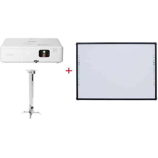 Комплект из проектора Epson CO‑FH01, потолочного крепления Mr.Pixel PRB‑2 и интерактивной доски Mr.Pixel S82 — готовое решение для оснащения учебных классов, переговорных комнат и презентационных пространств