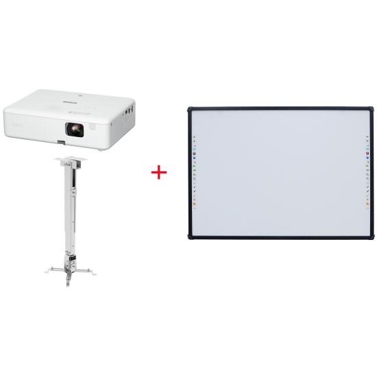 Комплект из проектора Epson CO-WX02, потолочного крепления Mr.Pixel PRB-2 и интерактивной доски Mr.Pixel S82 — готовое решение для оснащения учебных классов, переговорных комнат и презентационных пространств
