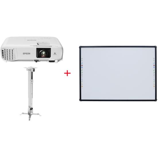 Комплект из проектора Epson EB-E24, потолочного крепления Mr.Pixel PRB-2 и интерактивной доски Mr.Pixel S82 — готовое решение для оснащения учебных классов, переговорных комнат и презентационных залов